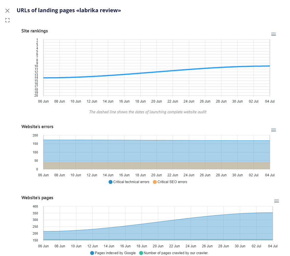 Labrika's tool includes several charts that provide a visual representation of key metrics: