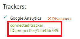 - Once the connection is established, the ID of the connected Google Analytics account will be highlighted in green. If there are any issues with the connection, a red warning will be displayed next to the unconnected accounts.