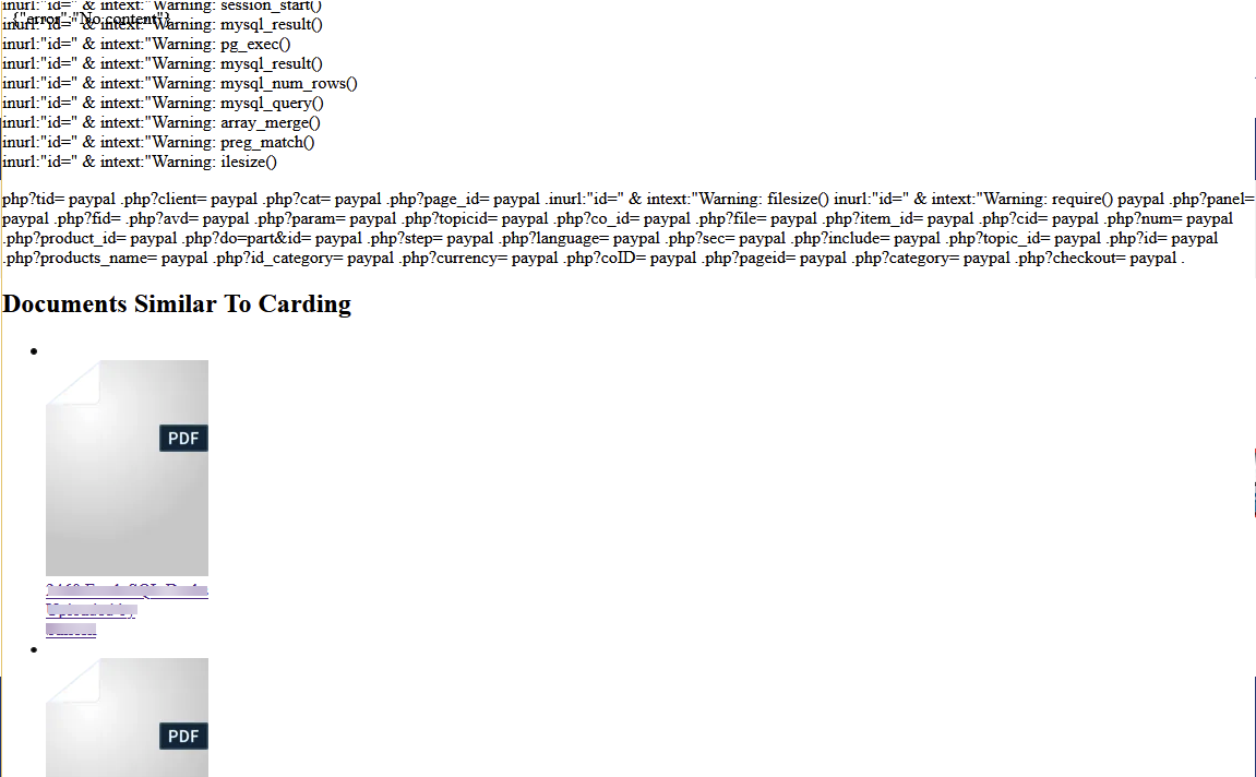 - Error text found on the URL listed in column 1.