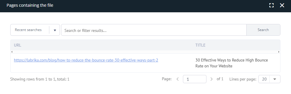 You can find the corresponding report in the left menu, in the section “Technical audit > Lost files”.