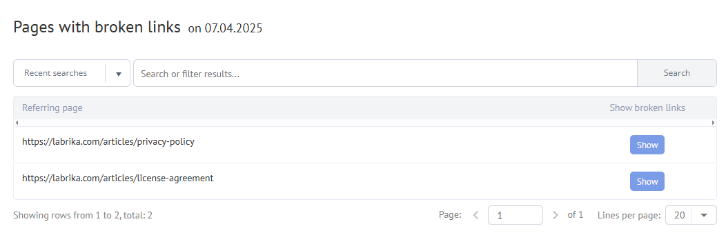 - Show broken links