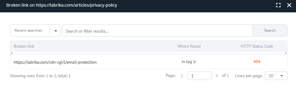 Note: Our crawler may sometimes receive a 404 error from a page that loads correctly for the user and has no visual issues, but is showing as a 404 non-existent page to our crawler. If this occurs, then we would recommend for you to check the response codes for these pages manually and report any false positives.