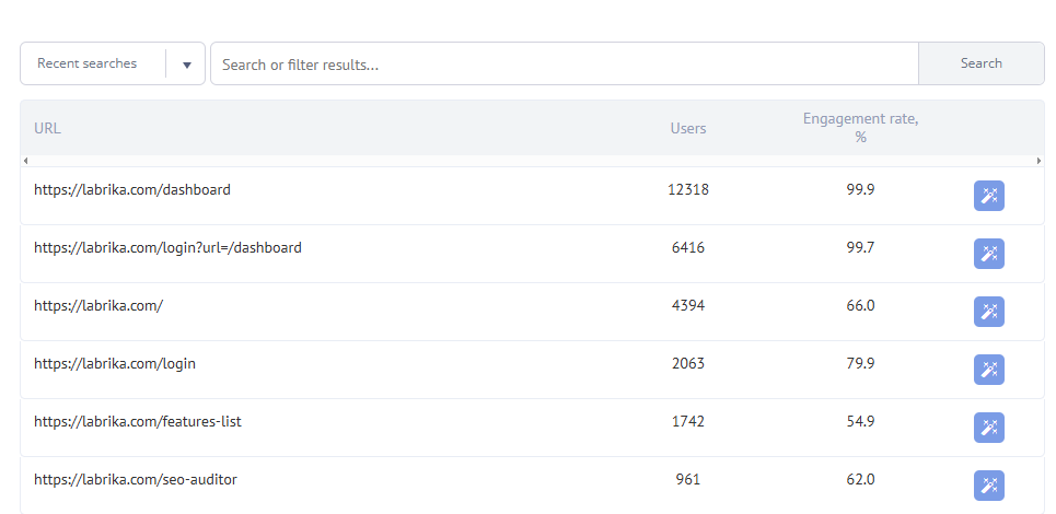 - Exit rate metrics showing lost engagement opportunities, allowing you to pinpoint where users are leaving your site.