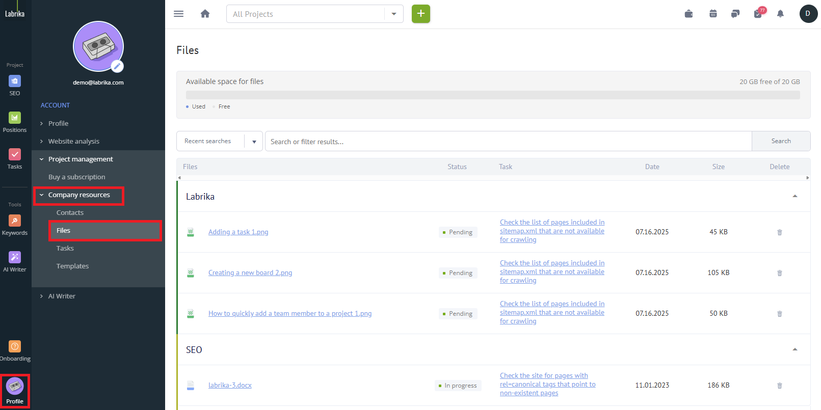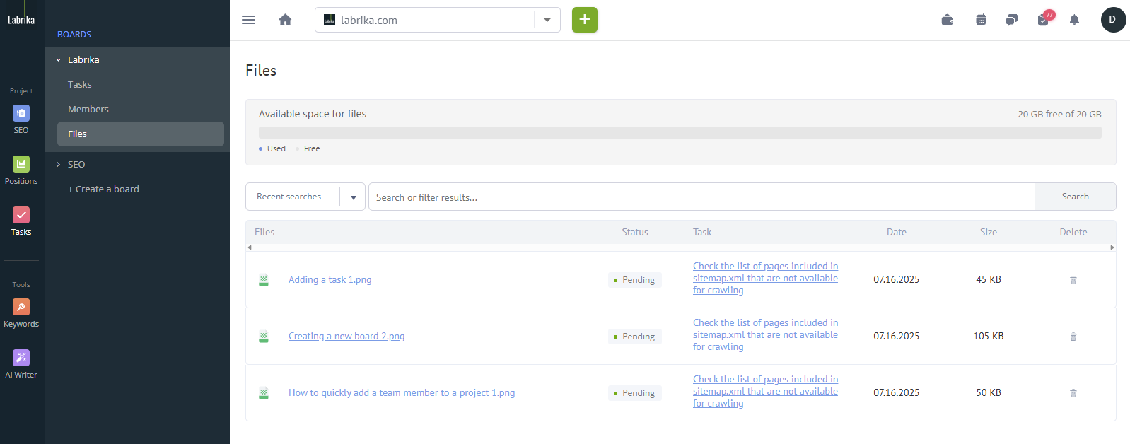 - Go to the Files subsection (4). In this section, you can view all the files that were attached to this particular board.