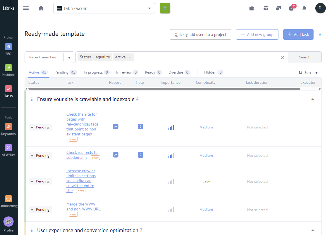 You can then proceed to the next step - adding a new task or adding team members.